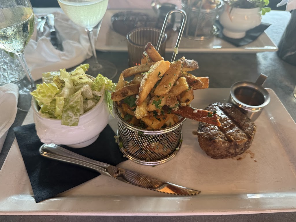 I highly recommend this dining experience! We did not have a reservation (party of 2) but they were able to seat us immediately. We had a super great server, Megan, who helped us navigate the food and drink menus. I had the steak frites which was amazing! They also have a variety of non-alcoholic cocktails. Overall great food, amazing service, and a beautiful view of the lake! We will be coming back!