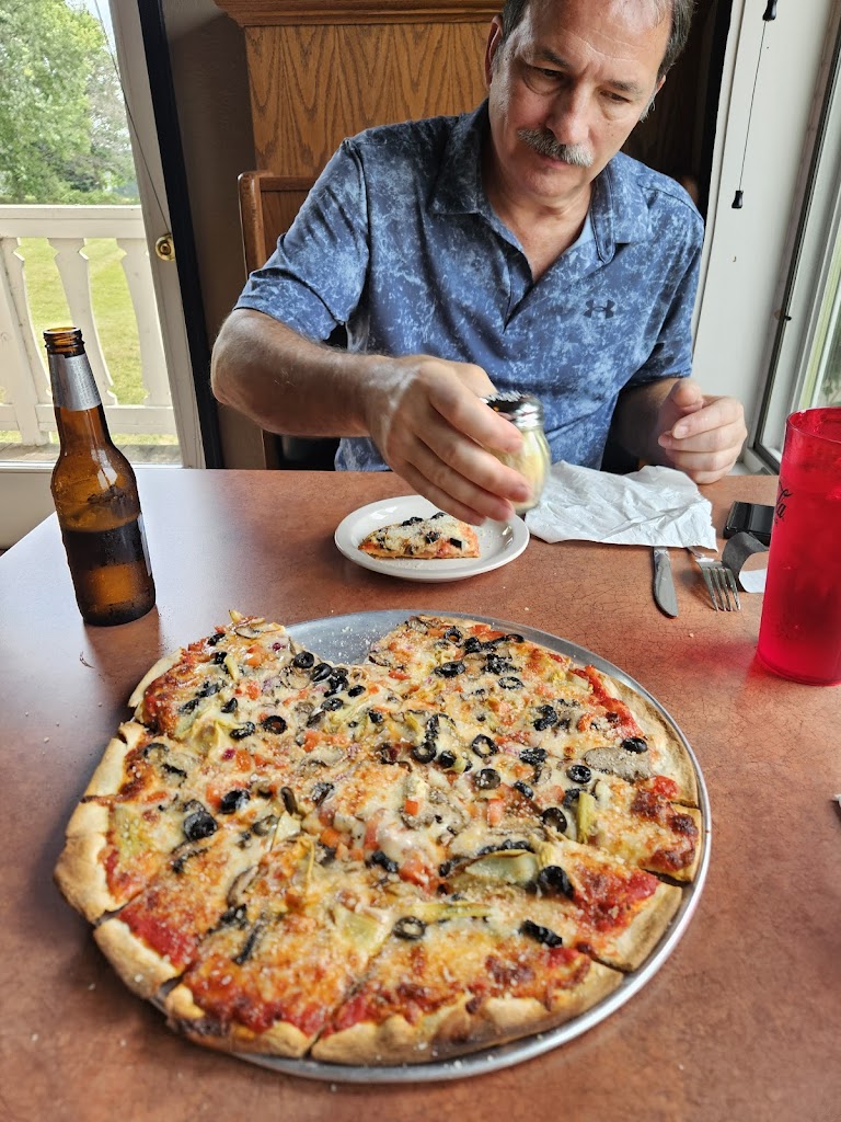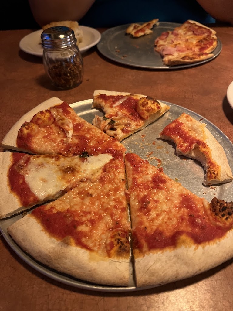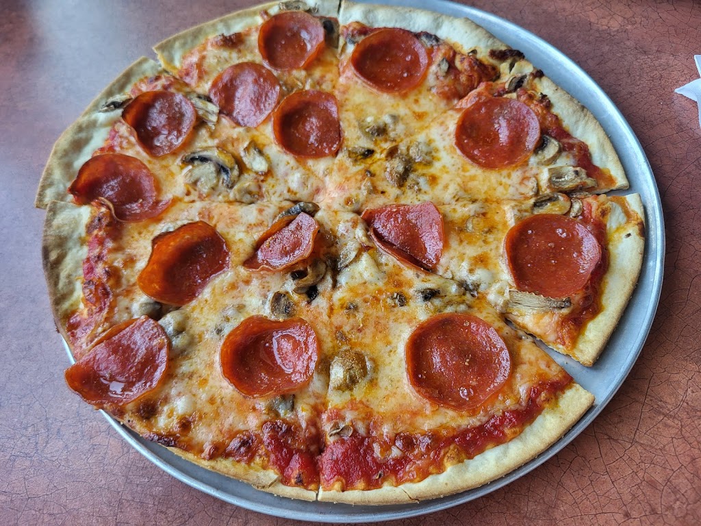 The pizza was good. Good flavor. Crust is too thin for my liking, but it's still good. Was my first time there. Wouldn't be my first pick, but I wouldn't turn it down, either. I've heard their pasta and garlic bread is amazing. I'll definitely give that a try.