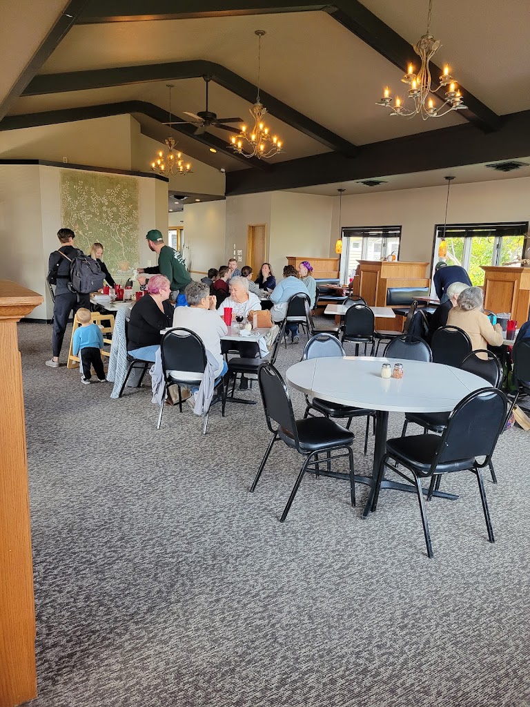 A lot of the rich people from green lake come here, plenty of space and wheelchair accessible, food is always good, upscale place