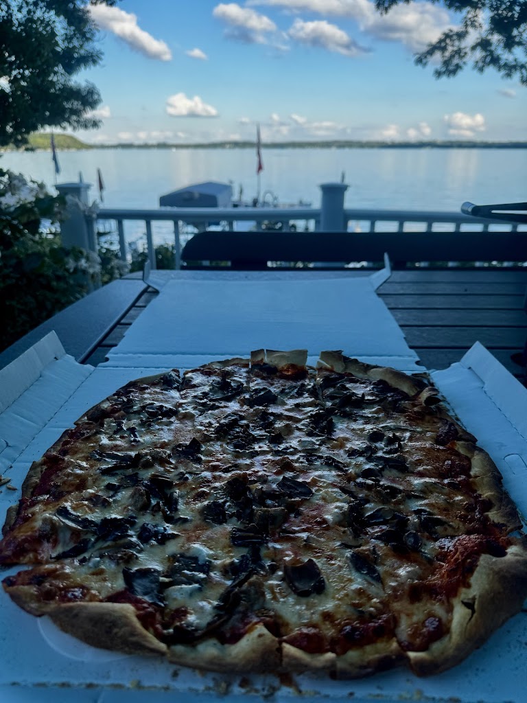 We sat on the patio on a warm summer evening, sipping cols beer and savoring delicious pizza. What a lovely spot to enjoy. The service was great. The waitstaff seems young but eager to work hard and do a good job. We were impressed.