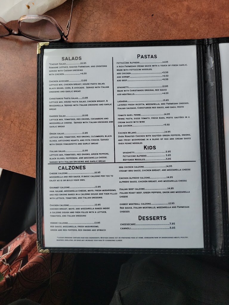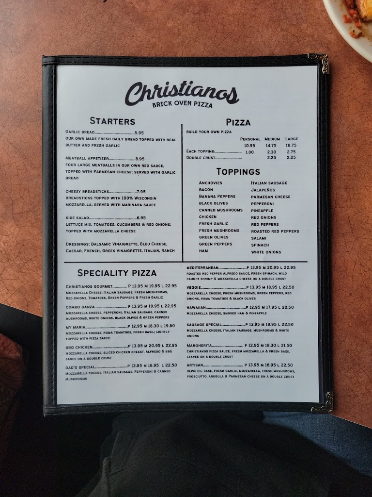 LOVE the pizza at Christianos!! Actually all of their food is great. Service is top notch and the staff is very friendly and professional! Always a very nice dining or take out experience!!