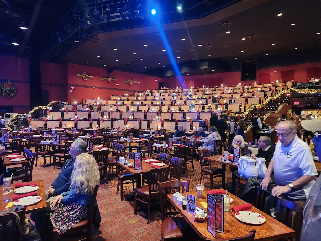 What an amazing experience! The food plentiful, tasty and hot. The server was very thoughtful and worked very hard. The show had a sense of traditional Christmas music, but also they mixed in some comedy and skits. Weβre definitely interested in going to their further showsβ¦the Western and Spooktacukar Halloween. The bathroom was also well stocked and very clean!