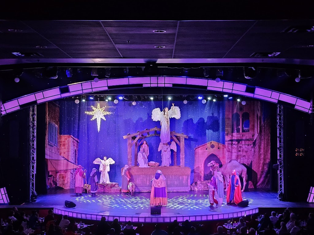 Great show, great Christmas message including the birth of Jesus, great waitstaff and all around great experience. Thank you