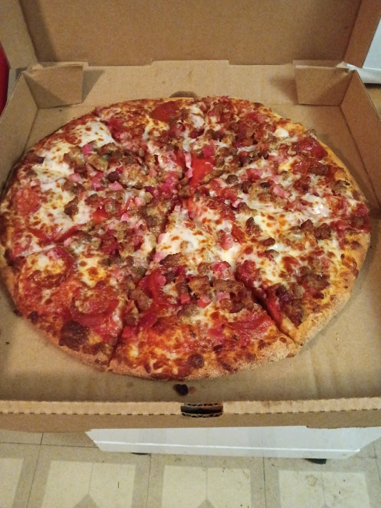 Pizza was not very tasty at all, very very greasy and very floppy. The greese went through the box and the cheese had slid part way off during delivery. Plus they got my order wrong. Not a very good pizza overall.
