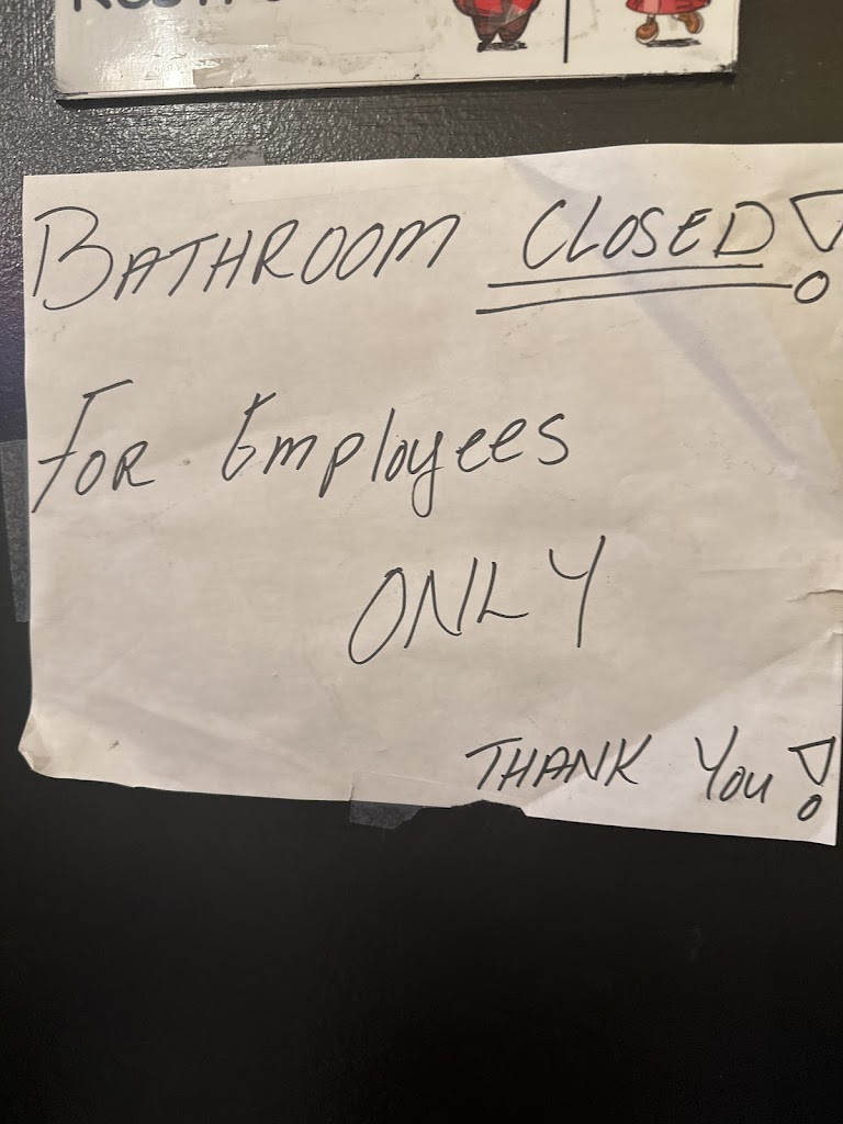 got 3 out of 5 of our party’s orders wrong and let my white friend use the bathroom but then didn’t let a black guy use the bathroom. talked to the guy about it and he said “it’s because of the time” i asked what the cut off time is and he said “it’s up to my discretion” bullshit. never going here again.