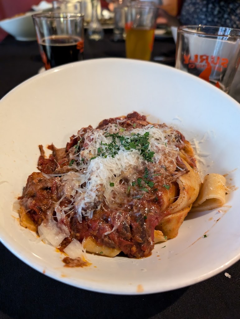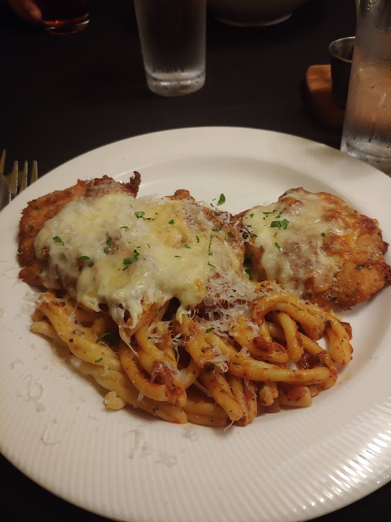 1st time eating here. The atmosphere was nice, music was a little loud for the dining area. We had a Charcuterie Board of meat, cheeses & crackers which was very good. My main dish was Breaded Chicken Parmesan and my husband had the Braised Pork & Beef. My noodles were cold when it came but they remade them and they were hot and fresh otherwise very good and leftovers for the next day.