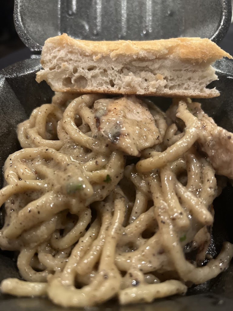 That said, the sauce was a bit too dark and slightly bitter for my taste, and there wasn't quite enough of it. The chicken was crispy but came out darker than expected and had a slightly oily flavor. Also, the pasta on the side was a little cold, which took away from the comfort of the dish.