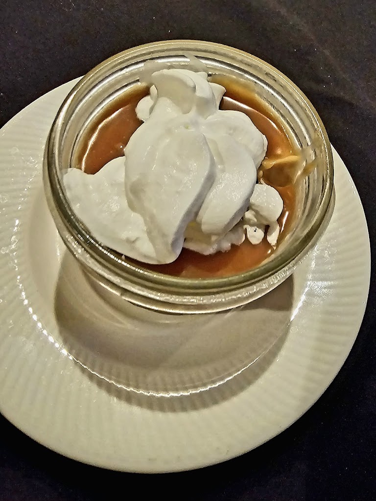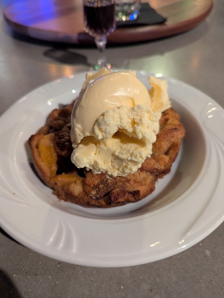 I had an excellent quiet little dinner of ravioli followed by a peach bread pudding with ice cream.