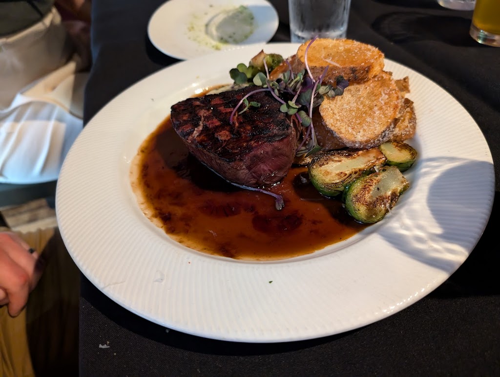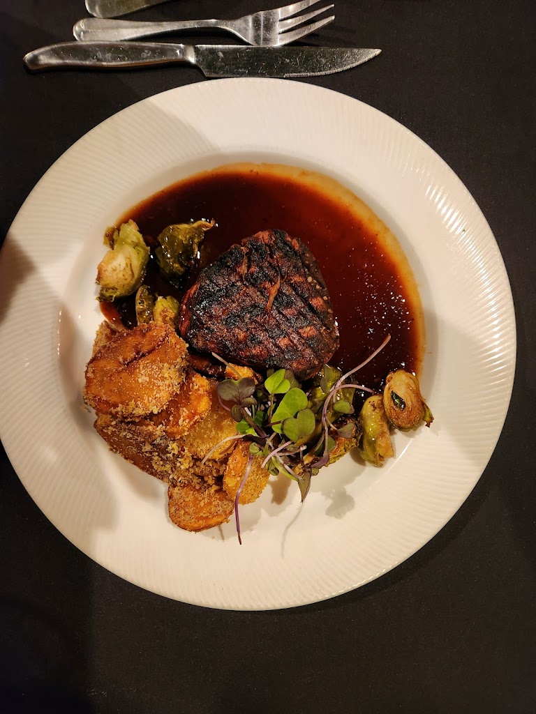 I cannot say enough good about the restaurant, food and wonderful staff! I can honestly say it was THE BEST pasta I’ve had in my life, and we even spent over two weeks in Italy. had Cacio e Pepe which was Bucatini Pasta (my favorite) tossed with cracked pepper and parmigianno-reggiano (a light flavorful cream sauce) and grilled chicken. They make the pasta fresh daily and Chef Adam prepares the food. My husband had fantastic Beef Wellington and Garlic Mashed.