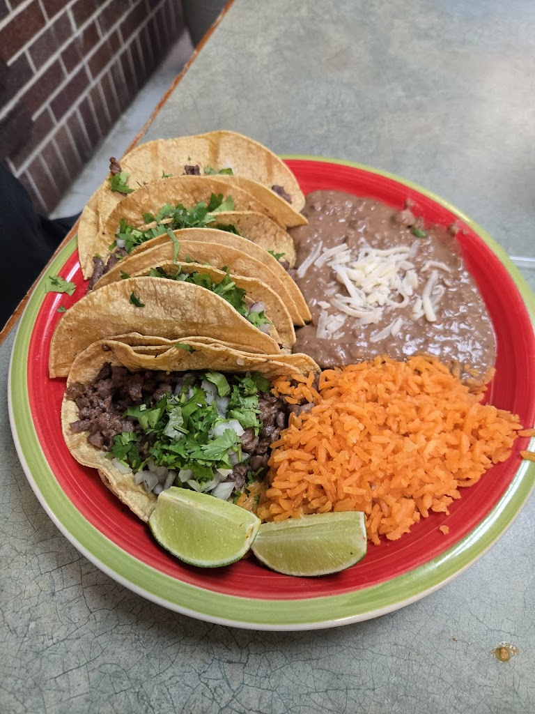 The tacos, rice, and beans were delicious! Service could have been better since my friend and I had been the only patrons in the restaurant - it took about 15 minutes to get our drinks (soda & water).