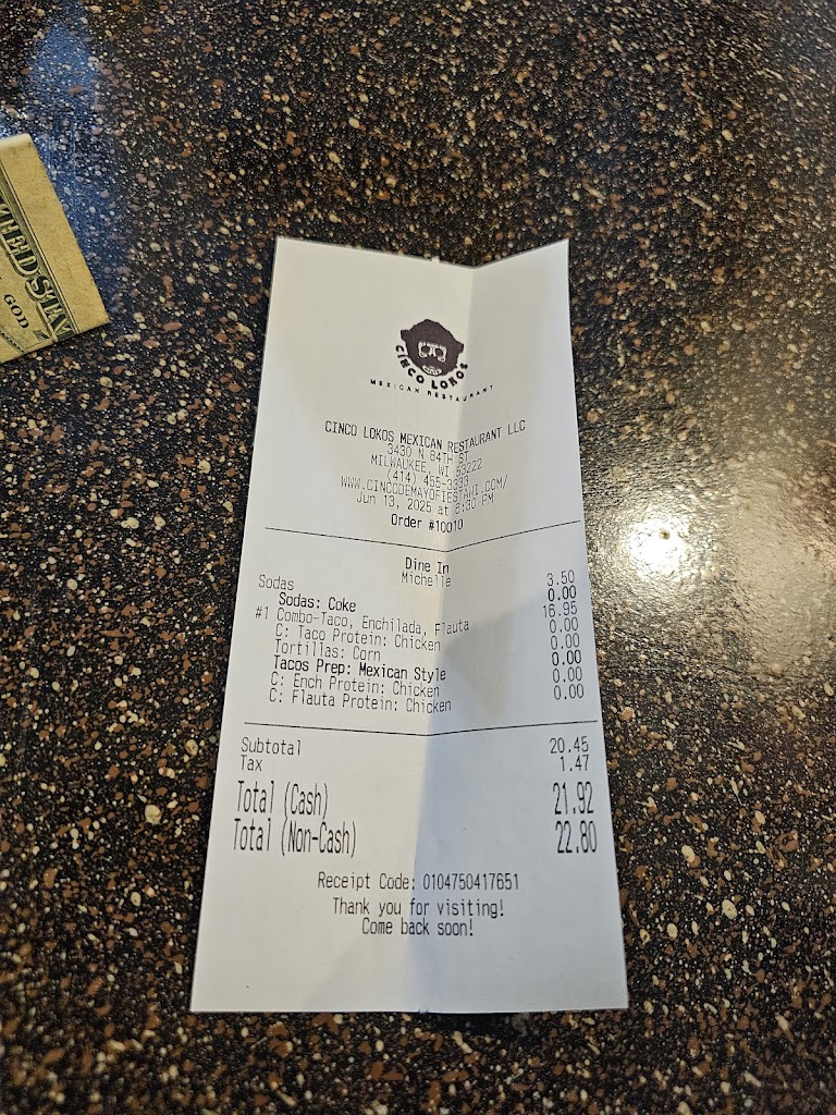 This place is pretty much $20 a meal/person for carryout. I got the grande burrito and there was nothing really grande about it. Especially for almost $20 with tax and card charge which I wasn't informed of. Had 2 square slices of yellow/white cheese melted on top of it which was kinda weird. I'd give this place a 2.7 out of 5 stars considering flavor and price. I get inflation and everything but I feel kinda bamboozled paying $20 for what I got. Especially since Mara's is right across the street and is considerably cheaper and more flavorful.