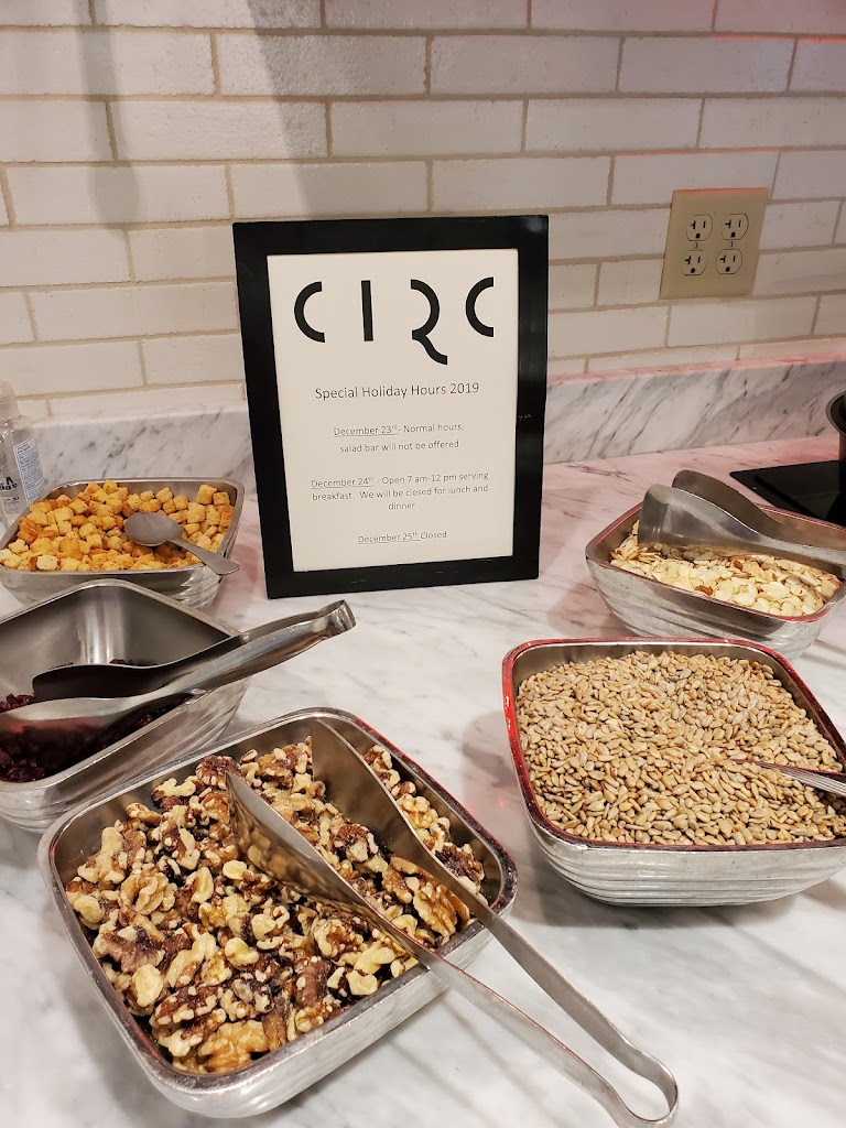 You know what the best part about eating out is? It's the experience, mostly colored by the staff you come in contact with. My favorite part about the salad bar at Circ is that it comes with a smile; the older gentleman (a member of the kitchen staff) who keeps the area clean and replenishes the items actually says hello, smiles, and thanks you for coming; I've never seen anything like it at a salad bar before. He makes everything tastes better. Often times there's no one at the host desk to seat you, but we've sat down before, and were soon spotted and welcomed. Today, alas, the cranky young waitress took exception to us not waiting [even] longer, and made it a point to yell "next time wait to be seated" loudly enough for someone on the 3rd floor to hear. She didn't like it when I replied that next time someone should be available to seat us: "Oh, Okay," she scoffed, and walked away. It's not even what she said, honestly (it wasn't that terrible), but the condescending, contemptuous tone, as if she were chastising unruly children, ruined the experience. I have food at home, and it doesn't come with an attitude. Clearly whoever hires and trains the staff needs to pay a little more attention to detail, and so should their boss, right up to the General Manager. One kind, always smiling gentleman built the Circ brand brick by brick, and one thoroughly unpleasant waitress razed it to the ground in one fell swoop. It's a crying shame. We'll gladly take our money elsewhere, and I'll use this example in my seminars on customer service because it's a textbook case of how not to handle customers (even those who commit the crime of not waiting long enough to be seated.)