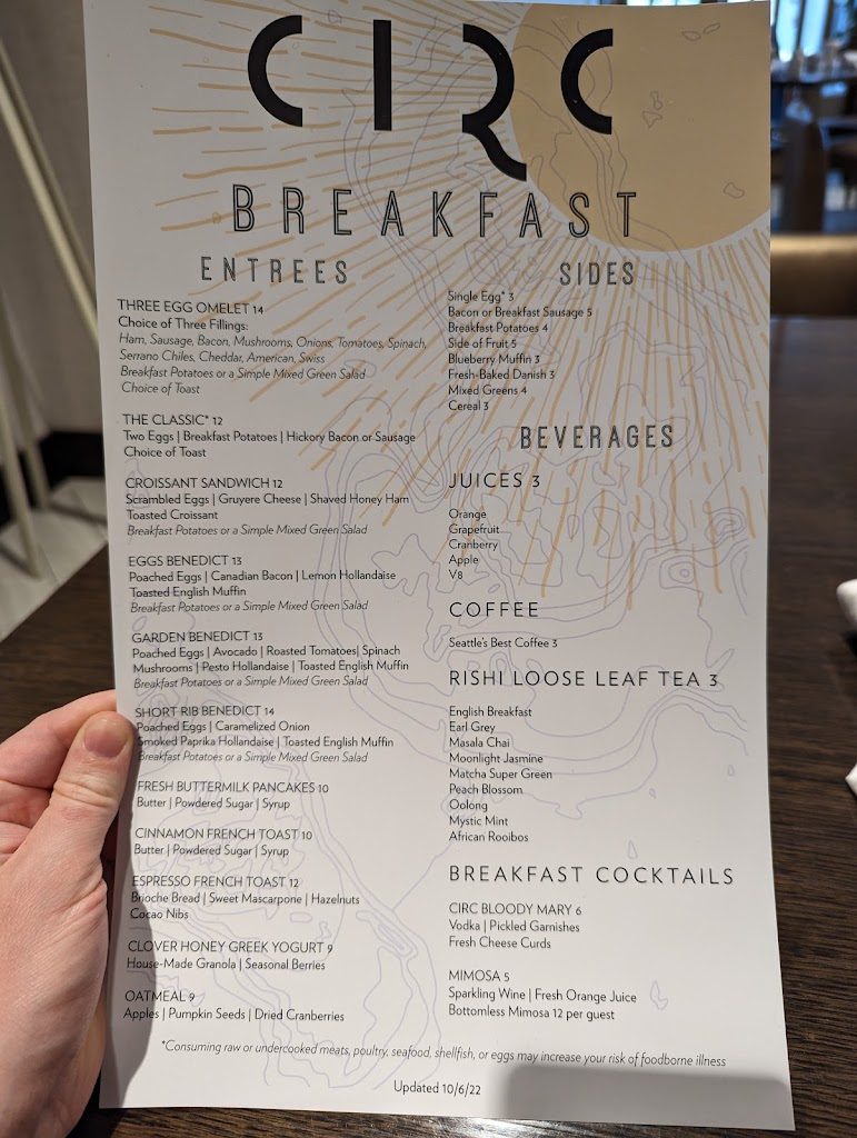 Circ did a wonderful job handling our group of 19 for brunch! Being seated in a separate room was perfect. Kudos to our server, Cae, who took care of us all on her own. The food was great as well - only shortly staggered coming out which is completely understandable. One person who is a hollandaise fanatic said her eggs benedict had the best hollandaise she's ever tasted! I would highly recommend Circ!