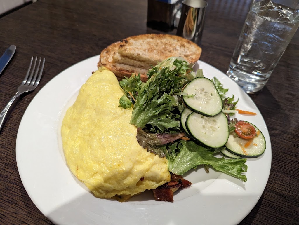 Food was fast and really good for breakfast on a Sunday. It's in the hotel 1st floor but you don't have to stay there to eat there