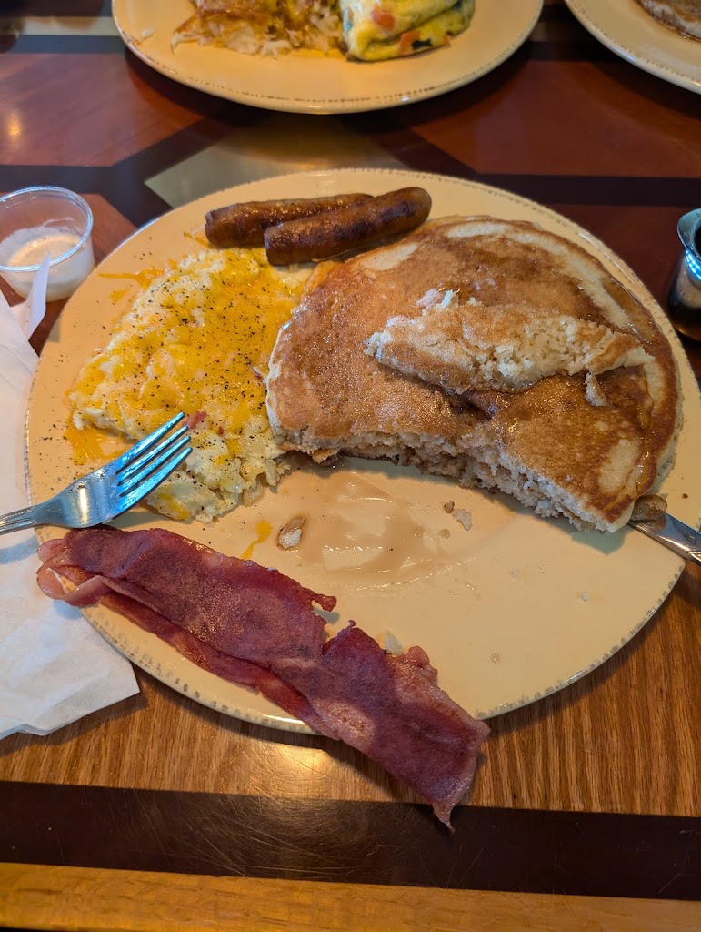 Our first visit. We both had breakfast for lunch. Great service, food and value.