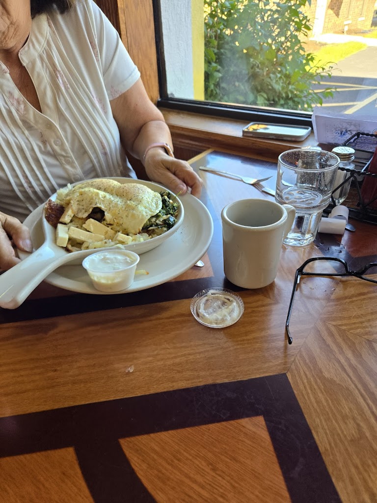 I usually order takeout here, and they are always very nice at the counter and food is always ready when I arrive. I love that they use chunk feta instead of crumbled. Skillets are huge! Pancakes are great!