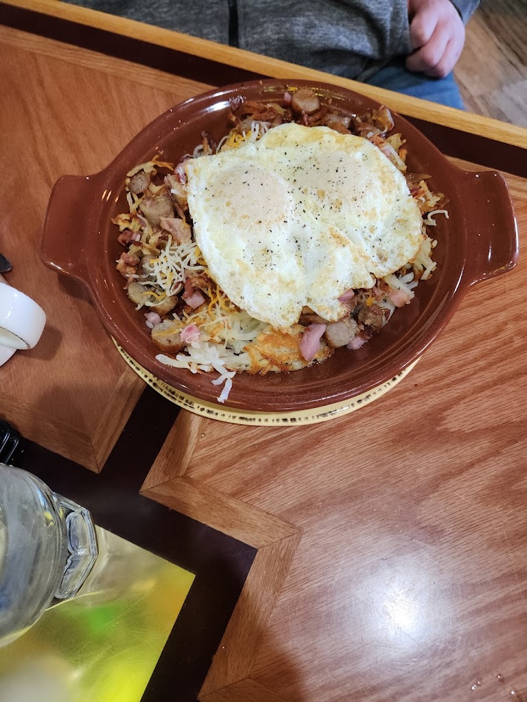 A very nice diner with great breakfast selections and some really cool ones I never heard of, I had the country Benedict biscuits were flaky and the gravy was good eggs were perfectly cooked, my daughter had strawberry stuffed French toast, looked amazing neither of us could finish so filling and very satisfying, staff was on top of our every need and even though they got busy we never felt rushed to get out even after we ate. Thanks for the good meal and great service we will definitely be back.