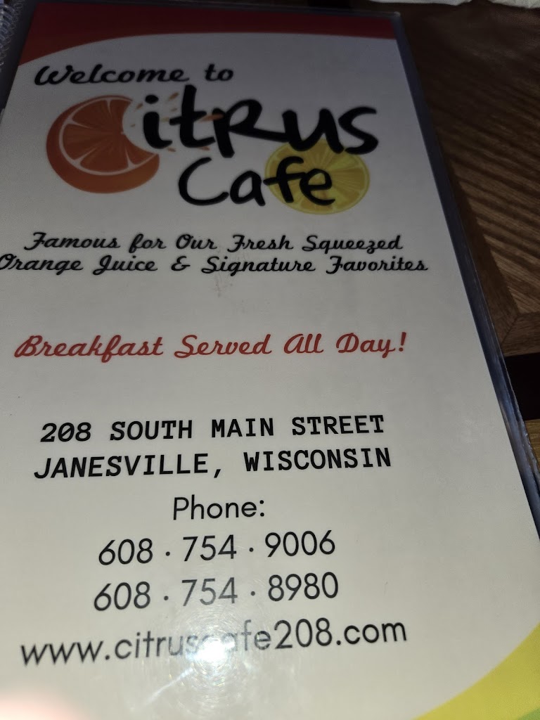 Citrus Cafe has excellent service and high quality food. On my last visit, I had the best breakfast I have had in years! Thank you 🙏