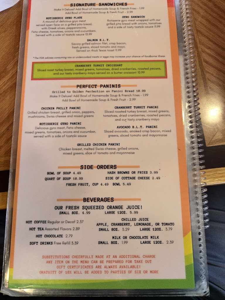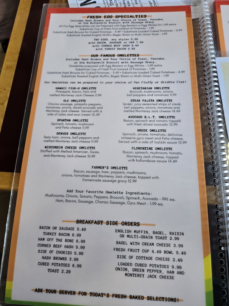 Friendly waitress, her smile as warm as butter melting on fluffy pancakes. The menu was an excellent assortment of classic breakfast favorites, with a few tempting twists.