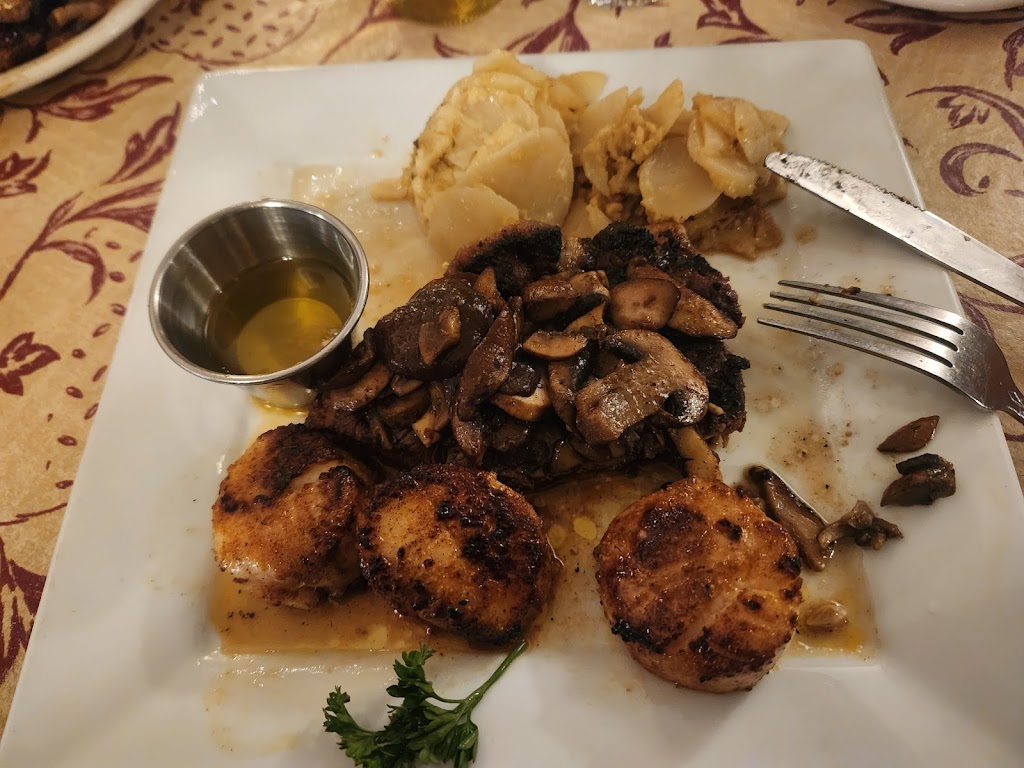 Shrimp cocktail was not chilled and could not finish it. Salmon was average but tasted previously frozen. Filet steak was average. Brandy Alexander was good. Overall nothing special so probably won’t return.