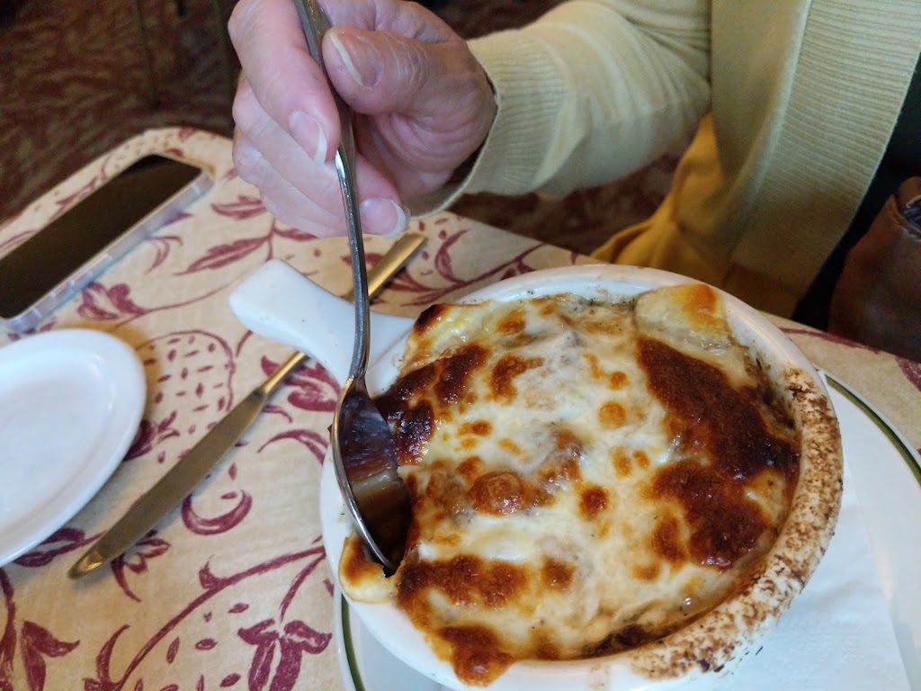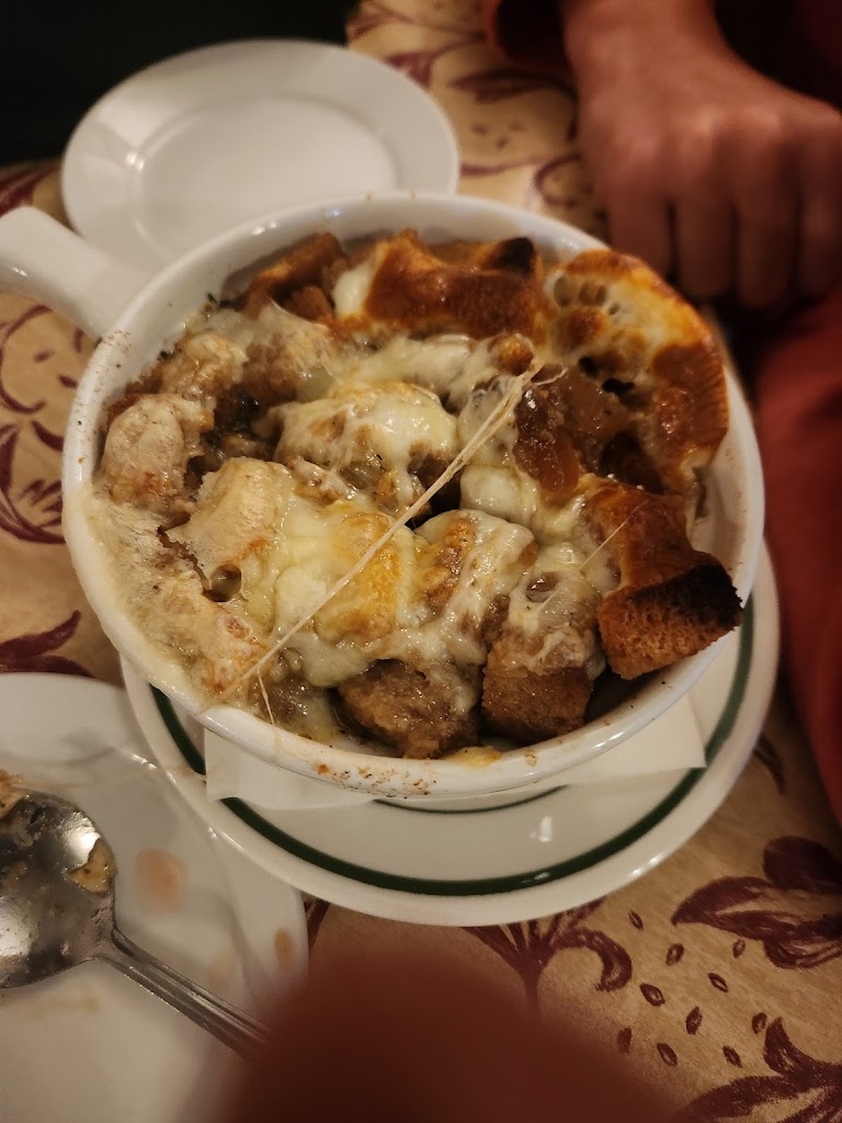 Decent French onion soup and drinks but just felt like Applebees in a dressed up historic package.