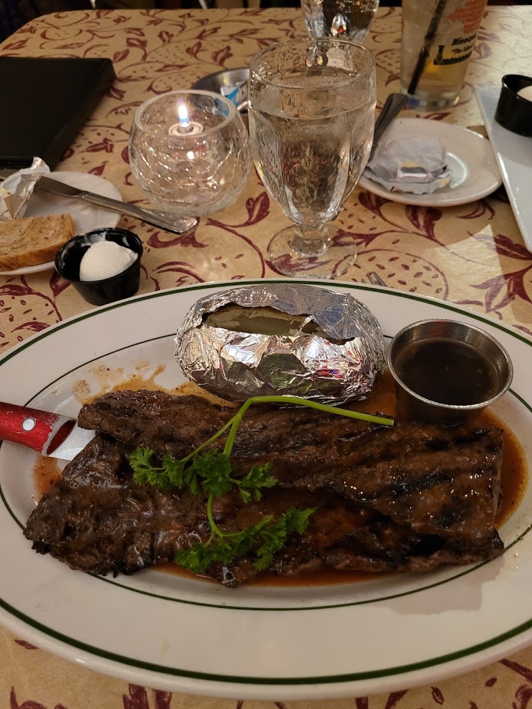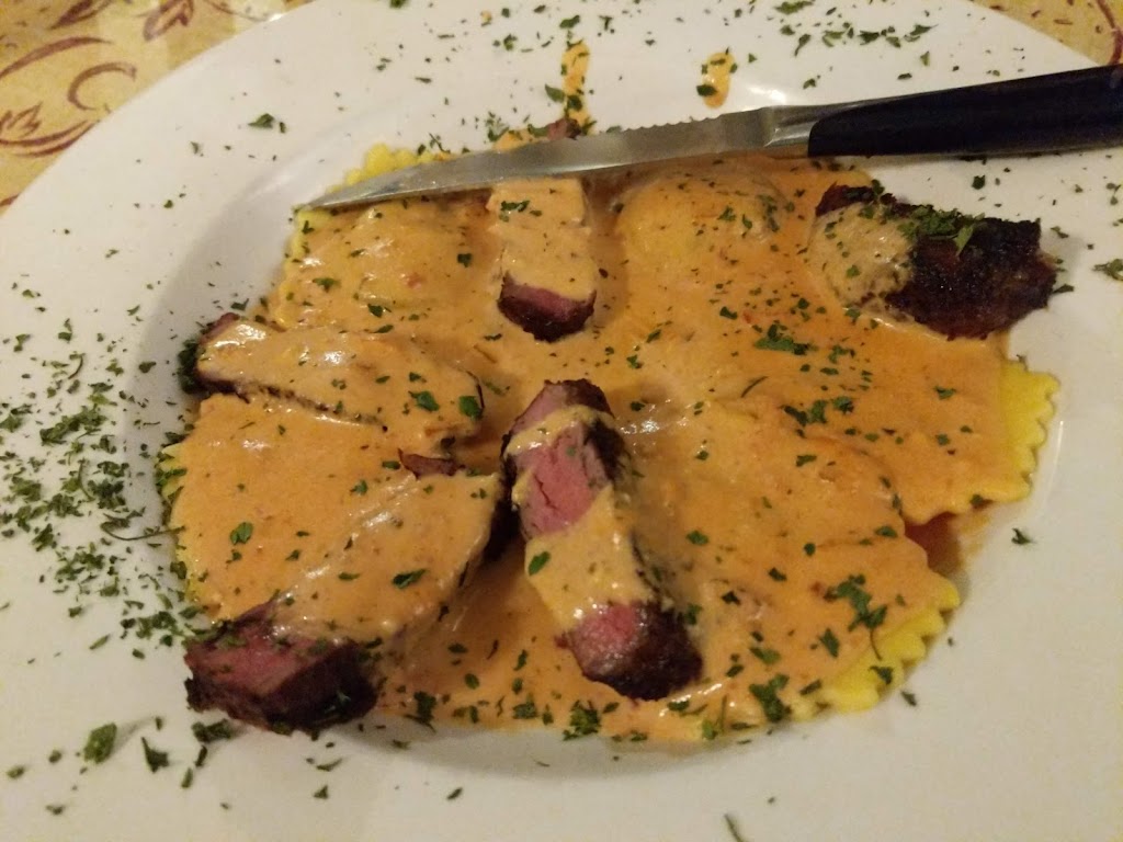 Magnificent place! My wife had the ribeye, and exquisite piece of steak perfectly cooked, I had beef medallions with Chianti ravioli in a Tuscan butter cream sauce, also exceptional. Chocolate cobbler (OMG!!!) for dessert. Great menu, great service.