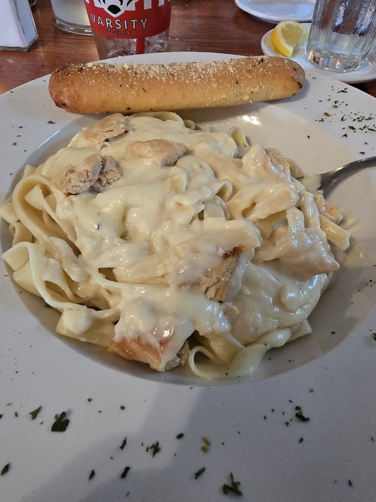 The chicken was dry to the point of being leathery. The fettuccine noodles were waterlogged and overcooked, and the only halfway decent part was the sauce — which barethe whole plate together. For a normal-priced entrée at $24, I expected something with quality and effort. Instead, it tasted like cafeteria food dressed up with a fancy menu price.