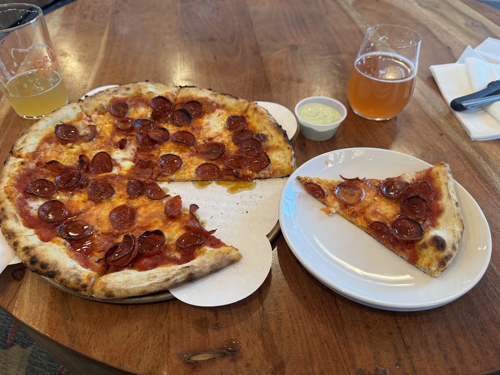I’ve been to this brewery 3 times, and each time the pizza is good, but always cold (how when it comes out of a wood fire oven?). Although I like the rotating beers, the service is SUBPAR at best. There were 4 people sitting at the bar, nobody in line to order, and yet my friend and I sat with empty cups for well over five minutes. The bartenders seemed more interested in socializing with each other than serving patrons.