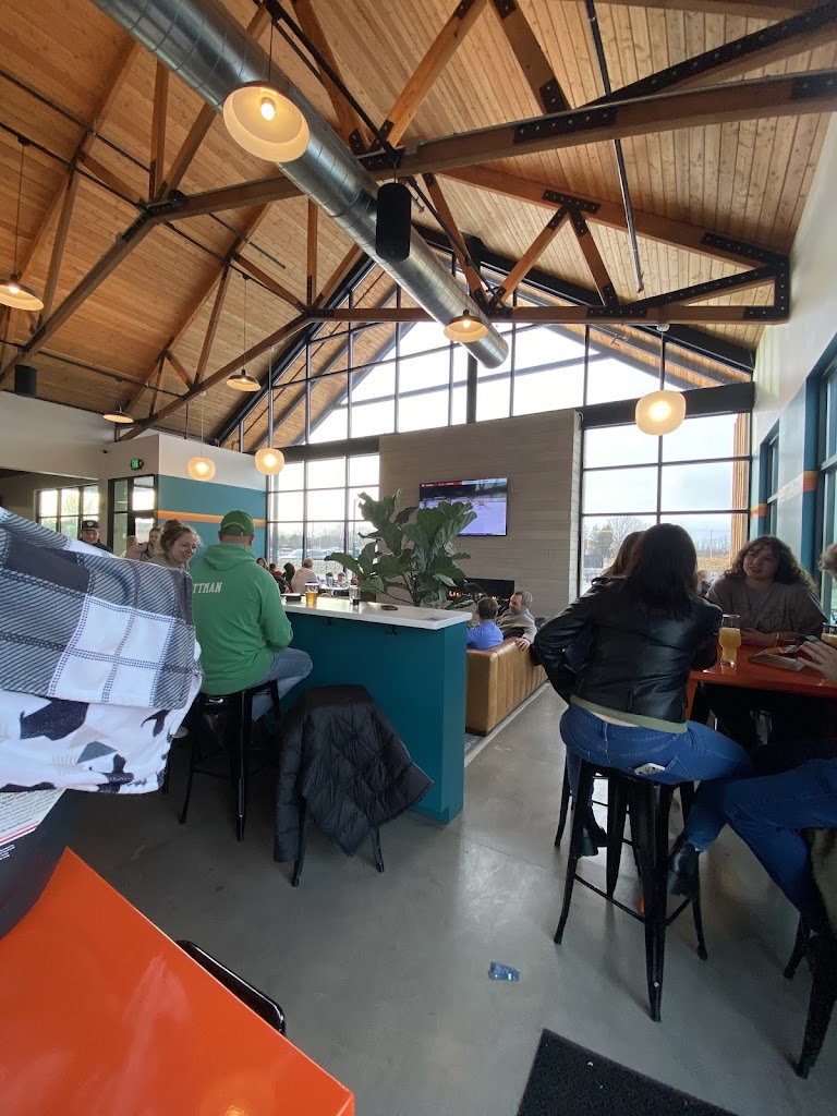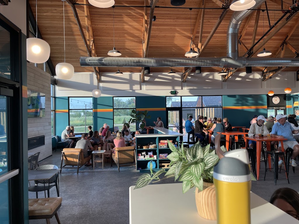 We went there with our 2 year old. Plenty of room for him to run around and have fun. We rented a cocoon for 6:15, but we were not suppose to be able to rent it because they closed at 7. Who I think was the Taproom Manager was very kind and apologetic. She allowed us to go into the room at at 6:15 until when they closed. She also refunded us our $100. So what could’ve been a bad situation was actually very wonderful. We enjoyed the cocoon and will be back when we are in town. I think most importantly the pizza and hummus app was so dang good. My wife and I are pizza fanatics and we loved it. We also go their Hazy and regular IPA. Very crisp and full of flavor. We sat outside and getting a chair was super easy. We did not spend anytime inside but it looked very nice. We can’t wait to go back. Highly recommend. For food, give yourself 45-1hr during peak times.