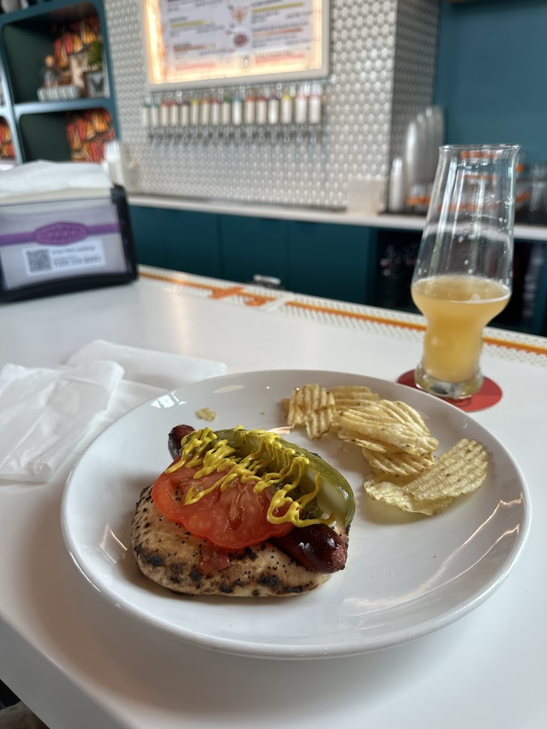 Great atmosphere, nice variety of beer. Had the Pilsner, Hazy IPA, and Kolsch. It was hot when we went, and the Pilsner and Kolsch were very refreshing. Also had the pizza and humus. Very delicious!
