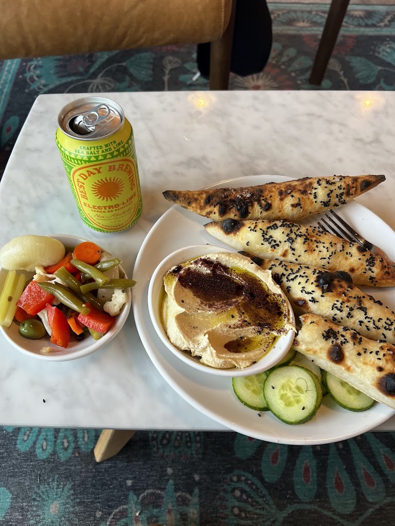 Great selection of drinks including NA. The pizza and hummus are fantastic.