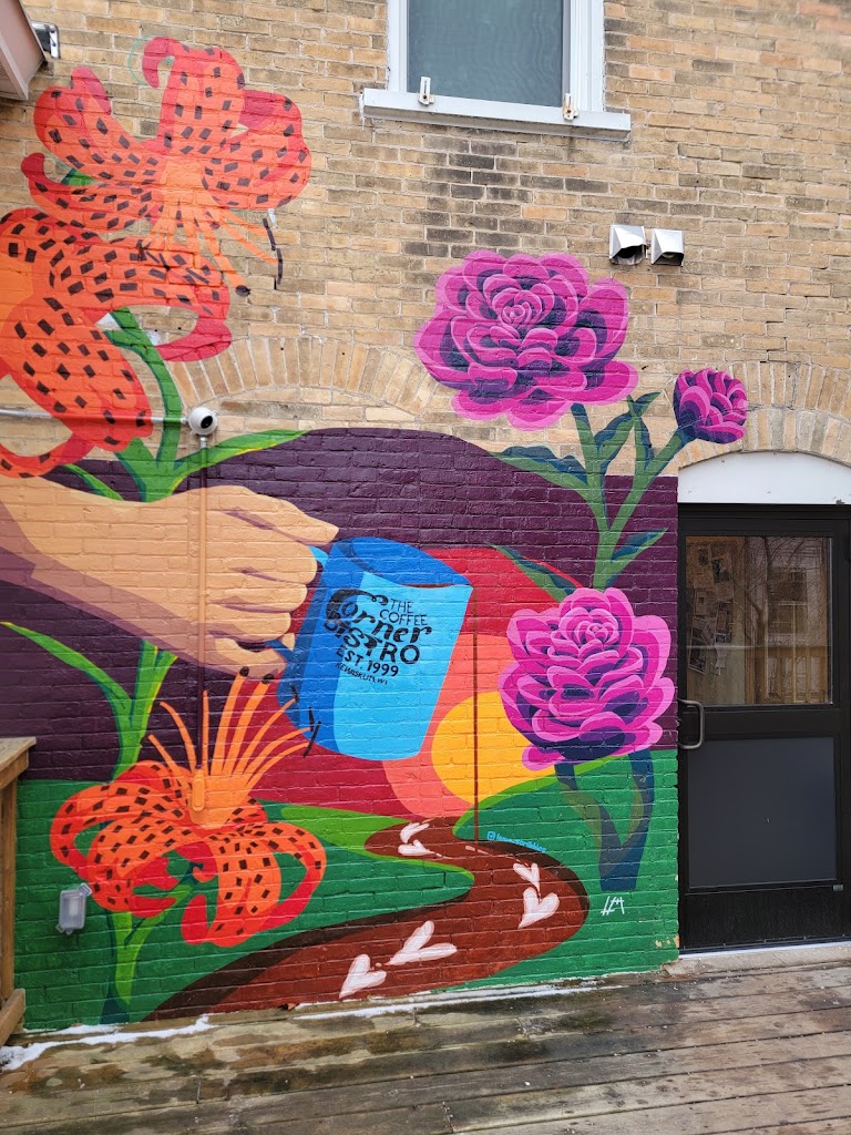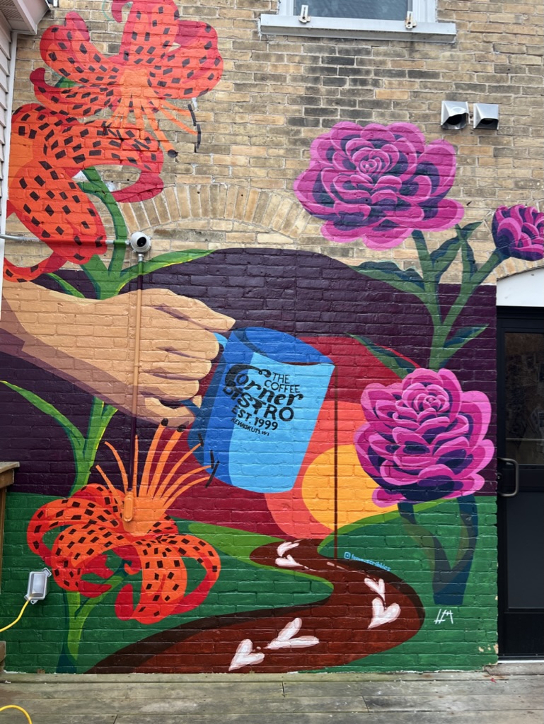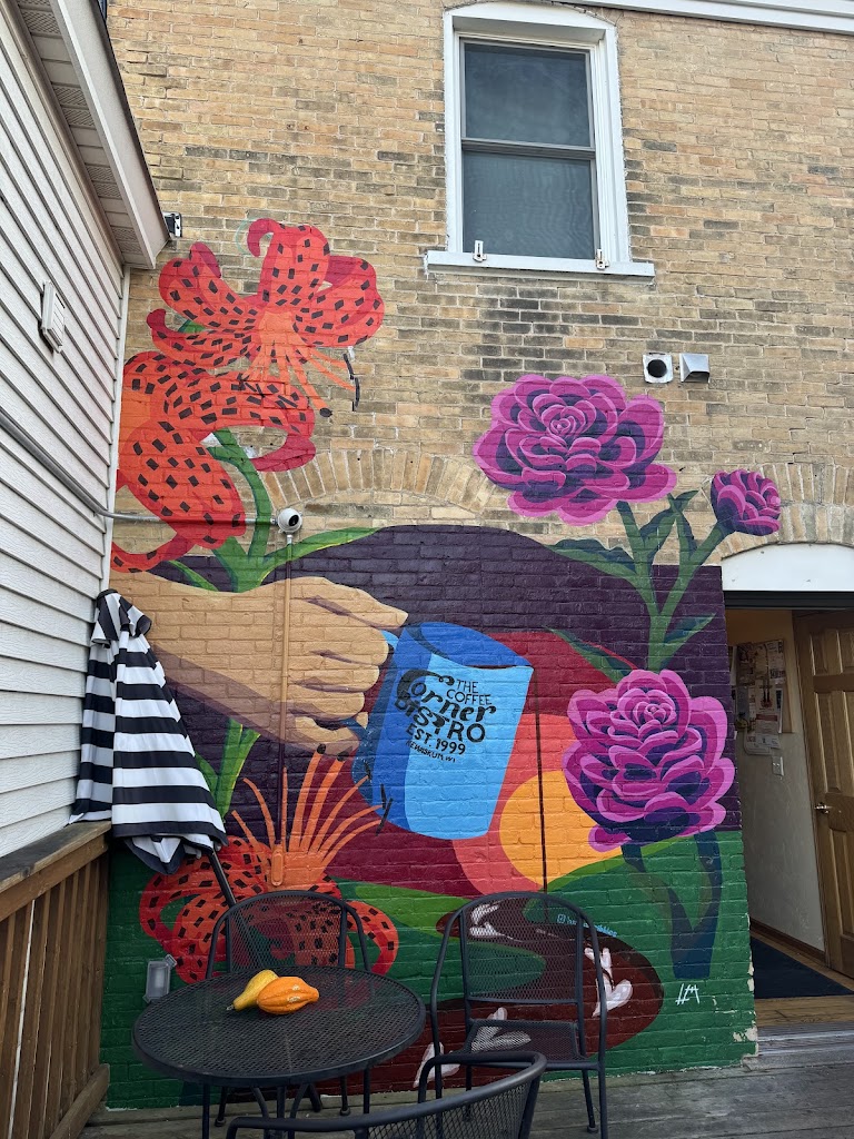 Coffee house on the corner. Locally owned, Collectivo Coffee House, with a variety of both caffeinated and uncaffeinated drinks- from moca's to lattes, to teas and smoothies. They have a variety of different delicious bakery options and sandwiches. Corner Bostro offer tables inside and outside for dinning or takeout. And although it's on the corner of a busier intersection in Kewaskum, they do have a parking lot with ample parking in the back. Employees were very friendly, and our drinks came quickly even though the house was a busy time on a weekend. Didn't notice from several signs that you can order in ahead of time as well.