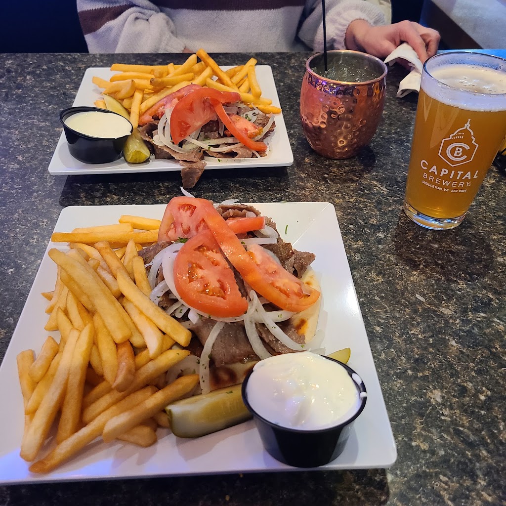 Fast service and good gyros. Decent selection of draft beer and cocktails/mules. Two drinks, two gyros plus tip $50.