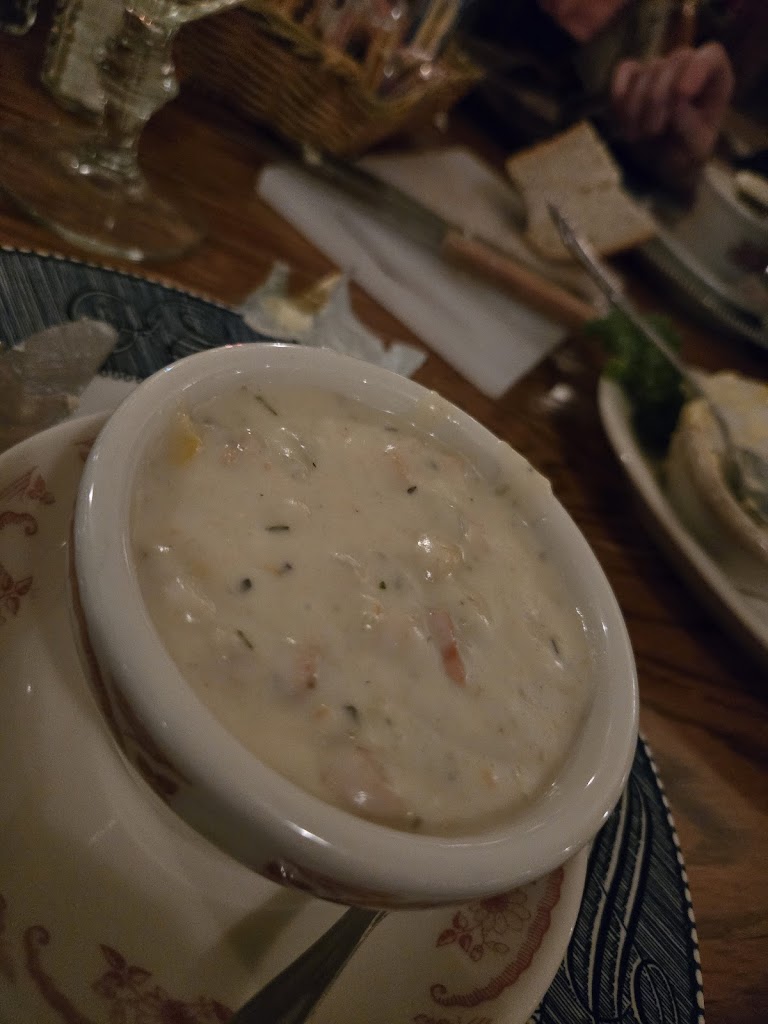 Ambiance and service were wonderful. Clam chowder was a winner, as was the ceaser salad.