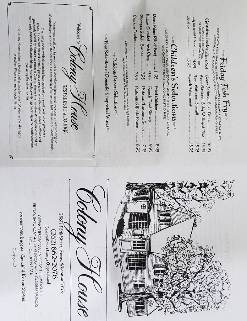 If you're a fan of supper clubs, visit the Colony House. You won't be disappointed. The food as well as the staff are both wonderful. Bring your appetite and enjoy.
