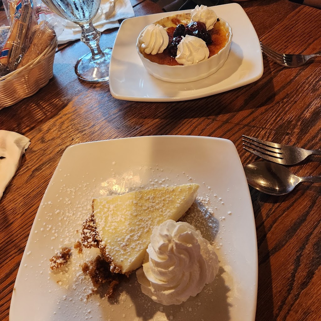 Service was excellent nice little cozy place but very loud in there also ordered the prime rib pretty good flavor but tons of fat more than your average prime rib not my favorite.
