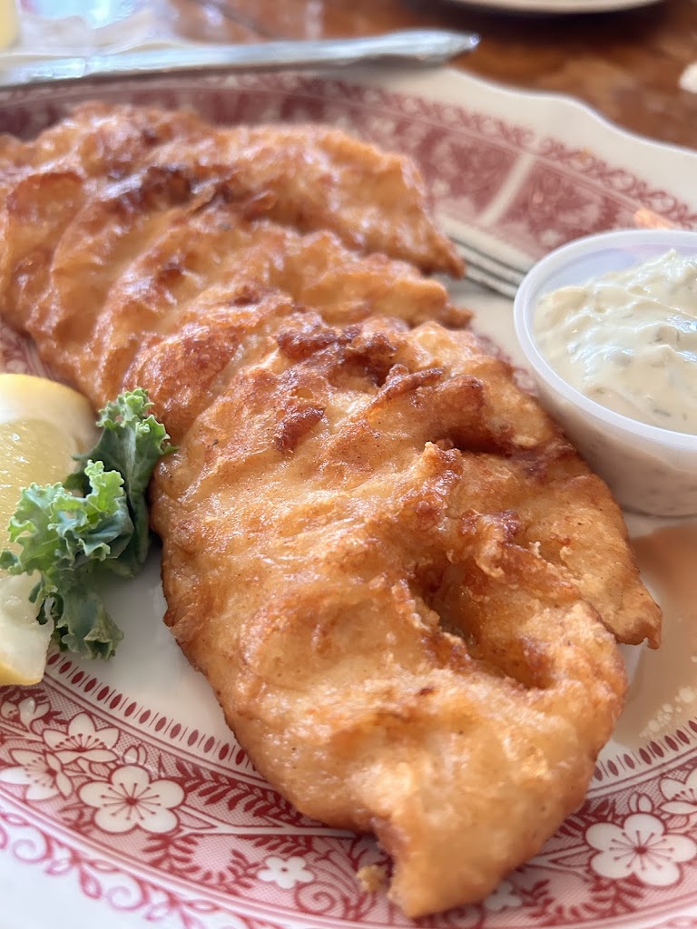 We were at the Colony House on a Friday fish fry night. Our server was great. Because they were very busy our food was slow to arrive. This gave us plenty of time for a beer and a cocktail. When the food did arrive, it did not disappoint. I had the walleye, and it was very good. My wife had the fish and chips, very large portion.