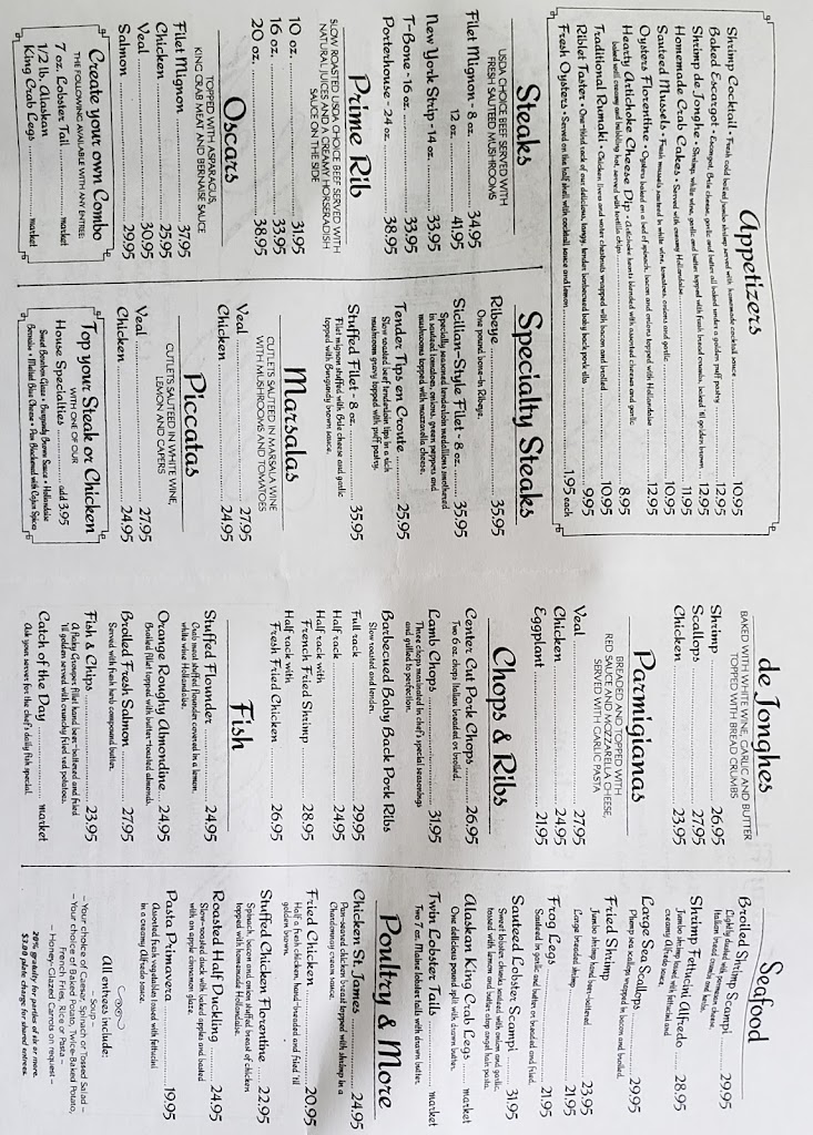 Old world style restaurant. Extensive menu AND you get a cracker basket, fresh bread, soup and salad with entrees. Twice baked potatoes were excellent. Staff is friendly and attentive. Has a supper club vibe to it. Zero complaints. Wonderful evening.