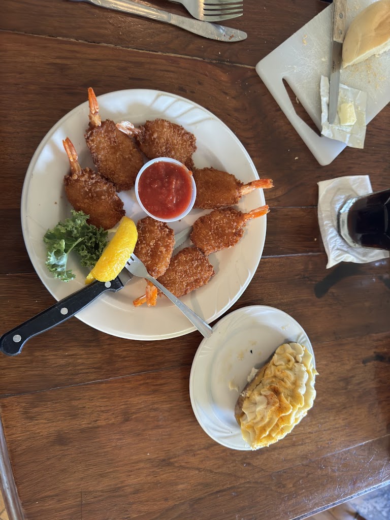 First time visitor: I had steak the previous day, so was in the mood for fish, so I order the grouper fish fry. Healthy portion of fish, tad on the salty side, but fried perfectly. Baked was also cooked perfectly.