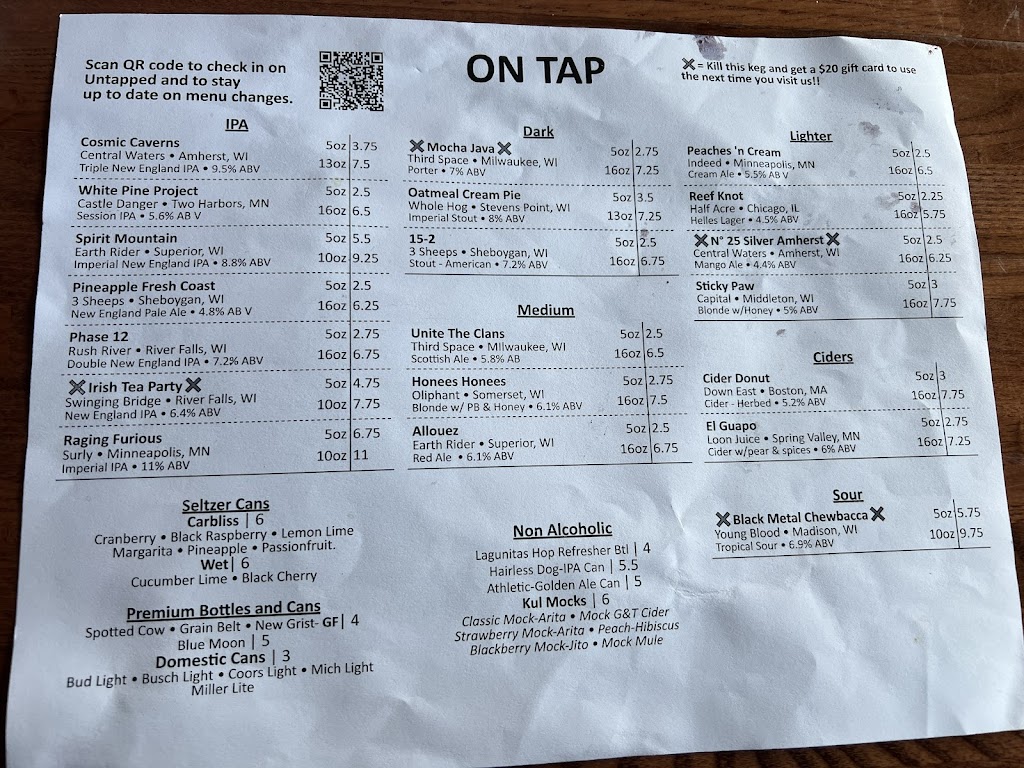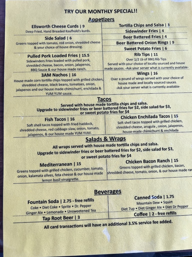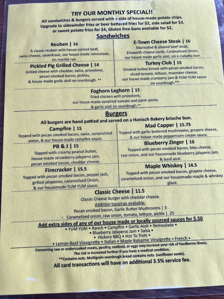 Food, beer and whiskey selection is great. Prices are also. I always stop here when I come to Ellsworth