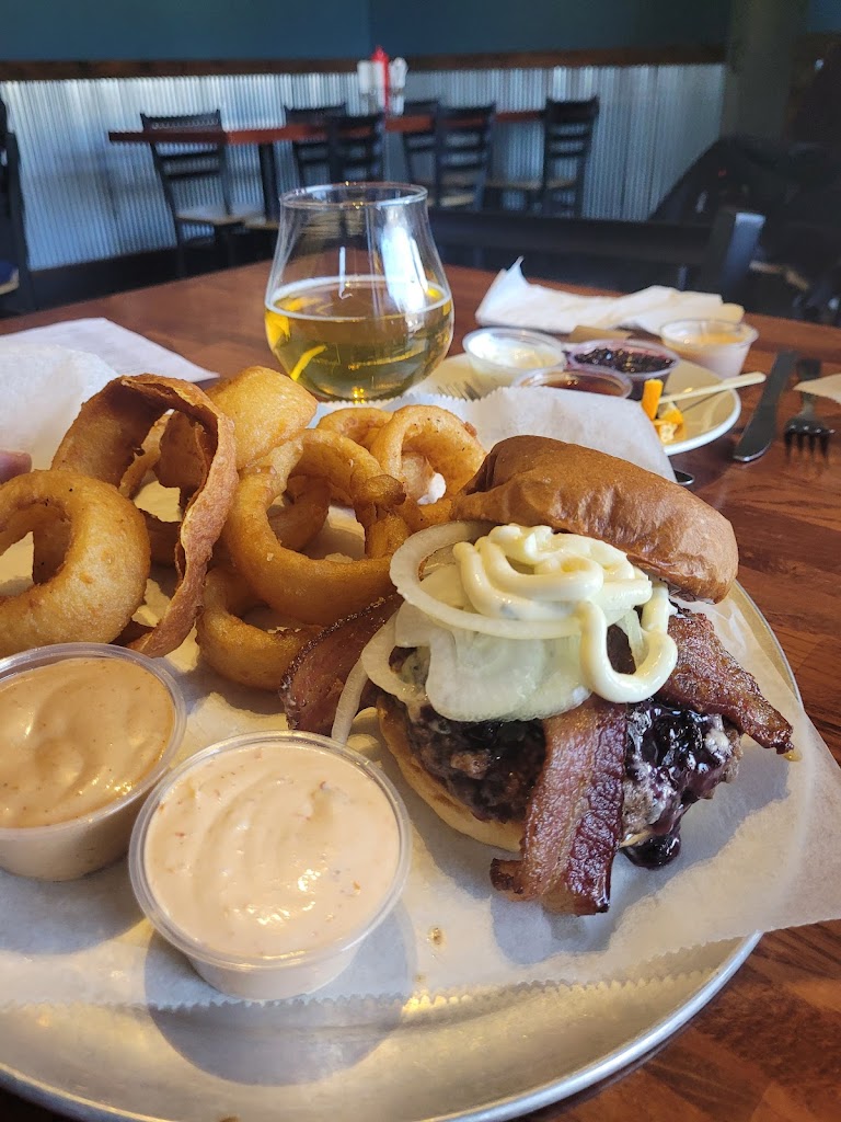 They were overwhelmed with the number of large tables so we had to wait a bit for our. Food but man was it worth it. I had the cowboy burger and I swear it’s the best burger I’ve ever had. The beer battered fries were the bomb and the beer battered onions rings thoroughly addicting. Had the Kentucky peach lemonade cocktail as well and so smooth. Will go back to try out the other unique menu items.