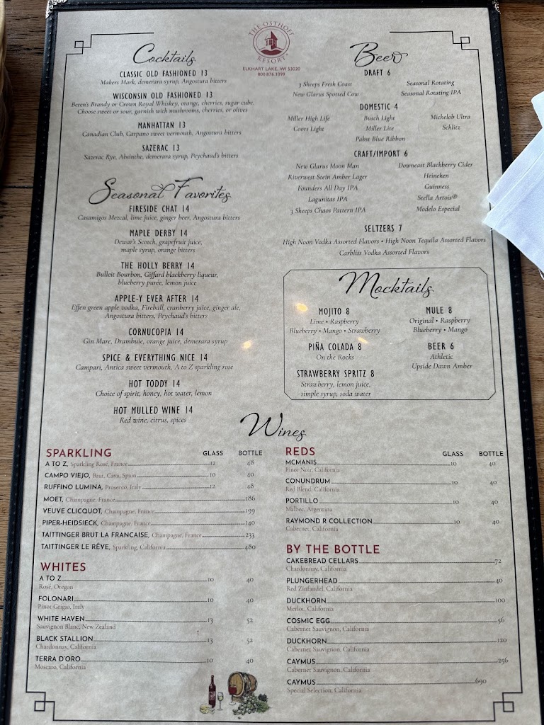 Excellent dinner! Eight people were served eight delicious meals. Eating at all restaurants in Elkhart Lake, the Appetizers, salads and entrees did not disappoint. Salad had the freshest ingredients, steak was tender and delicious, salmon, veal were all well prepared. For a nicer meal in Elkhart Lake would highly recommend!