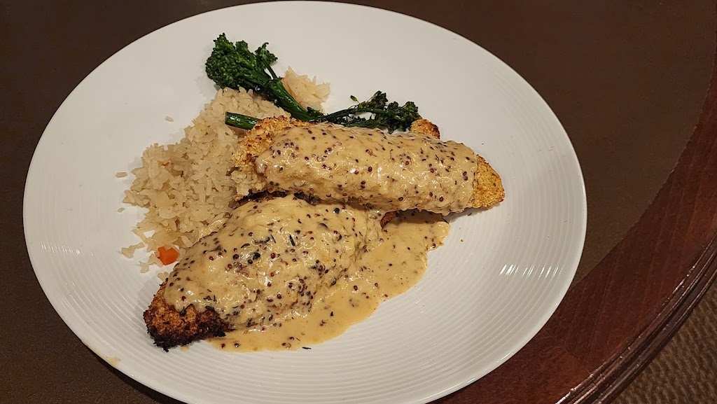 Horrible!! Would not eat there again. Service was ok, but Food, not so much. Very little selection, everything a la carte, one chewy pork chop, 1 small soggy Caesar salad, 1 plate of tasteless Alfredo pasta ( tasted like cheese soup and noodles)with part of a dry chicken breast on top, no drinks just water, with tax came to over $80.00 with tip a $100.00. Actually meal was not worth a third that amount. Go downtown to eat. It’s just a couple blocks.