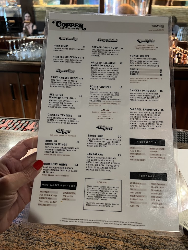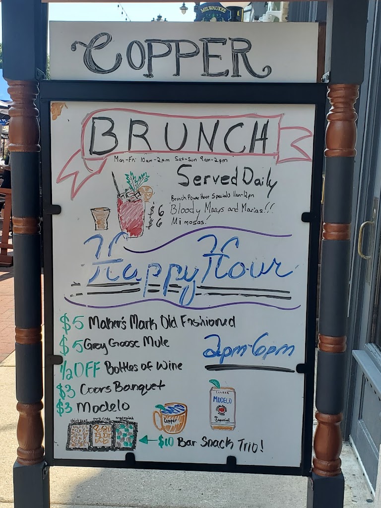 Copper is a bar and restaurant located in Milwaukee, Wisconsin that focuses on slightly elevated bar fare in an inviting atmosphere.