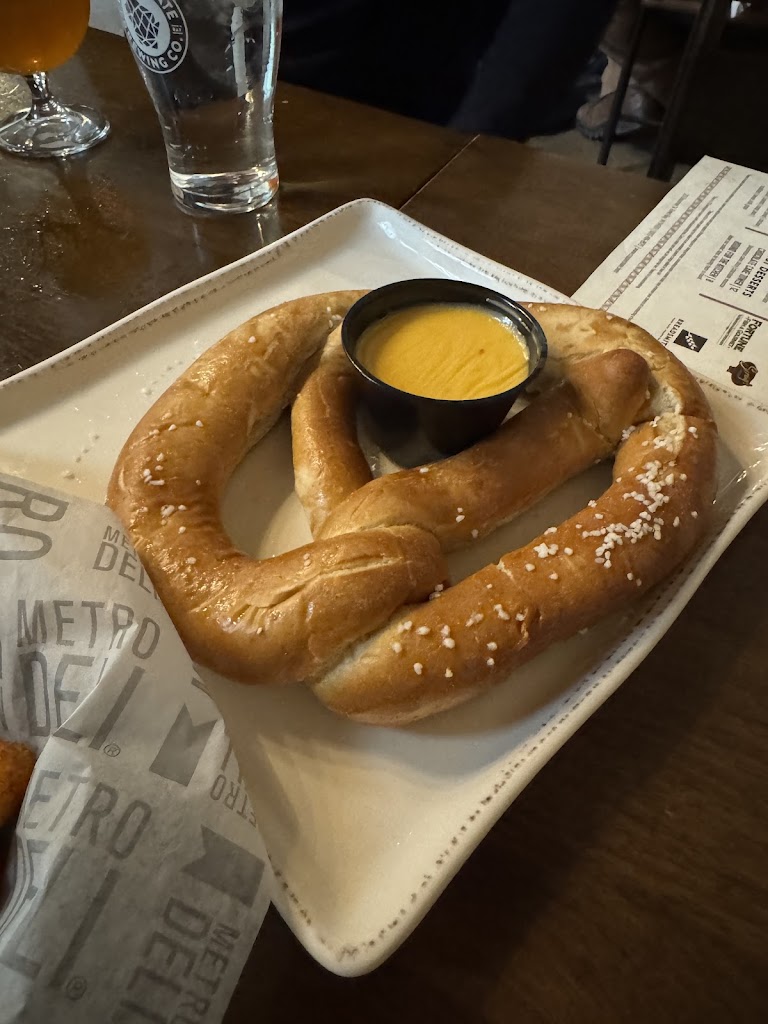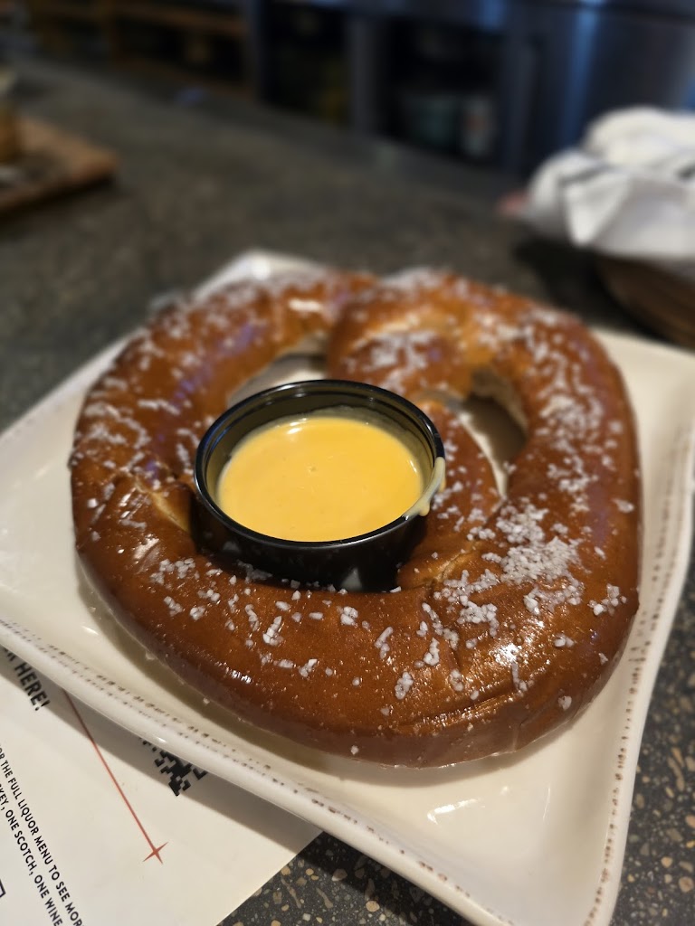 My wife and I have been going here since they opened. I have posted how happy we have been with service and quality. We haven't been back to visit in a short while, 3 months or so. It took a while to be served for first drink we both understand when things are busy so no harm no foul, we received or next drink or two in a reasonable amount of time, we decided to order an appetizer, a pretzel which we have ordered many times, it was sent out with what a person sitting next us said the cheese look like it came out of a can and it is exactly what it looked like, not what we have received previously for many visits. We did not eat and decided not to except it. In writing this review so hopefully this type of service doesn't become the norm and was a freak incident.