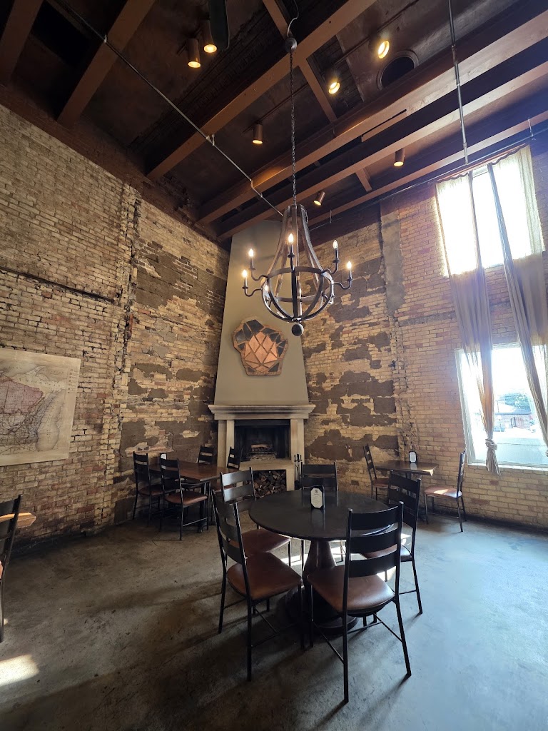 Good food, good service. Really nice atmosphere. Beers are definitely above average. The building itself is really old right on the railroad. Nice outdoor seating area, pretty large too. They have excellent local roasted coffee too. To Go beers for sale, six packs and barrel aged bottled stuff too.