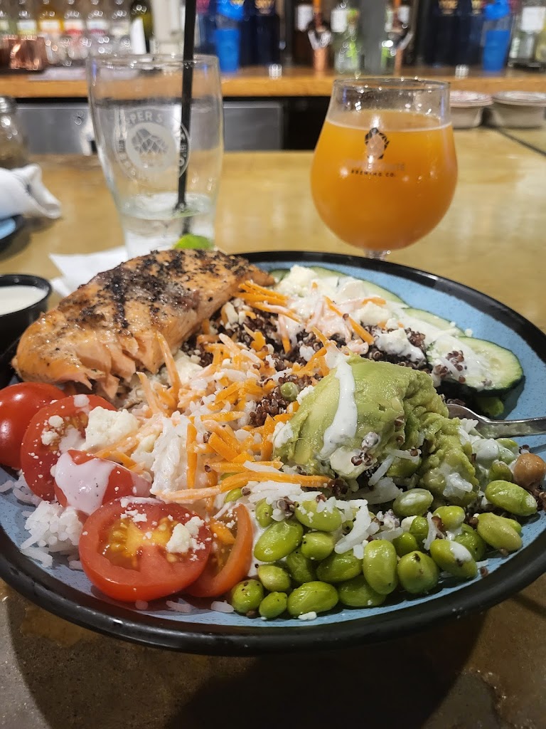Very busy for a Saturday night, but the Pomegranate Sour and Beermosa tasted amazing with the Power Bowl+Salmon.