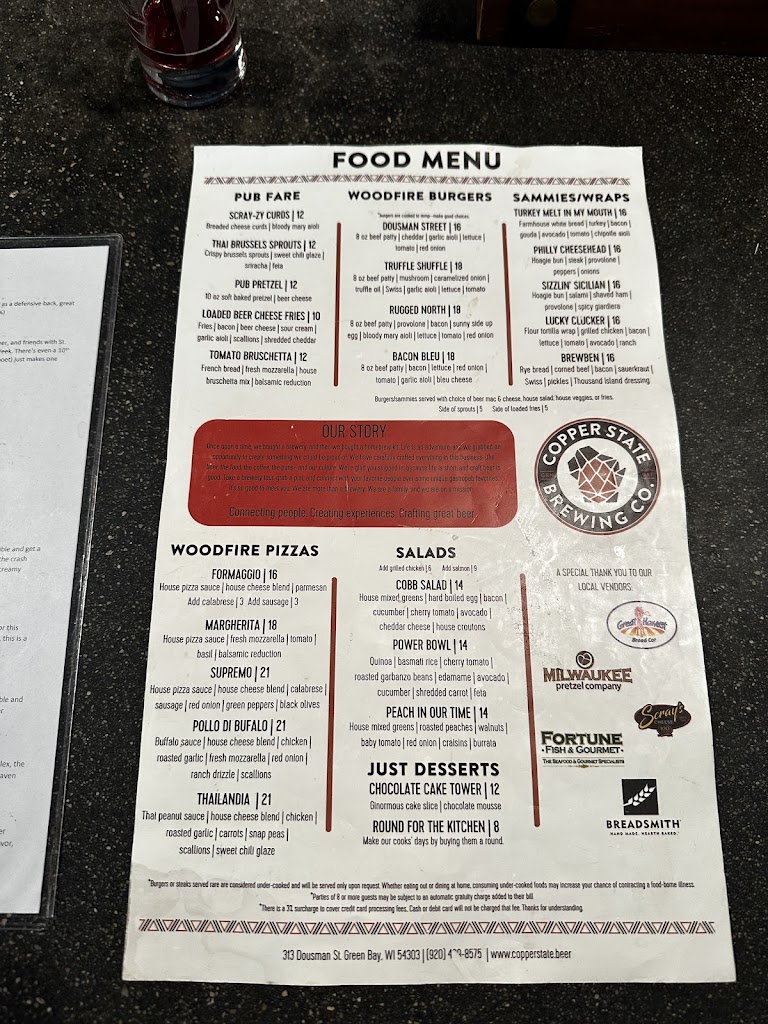 This was the first time I visited Copper State and it won’t be the last! The bartender, Michael, helped me decide a beer I’d like and had a great attitude. I ended up ordering the Rugged North burger and it was GREAT! All around cool place with way better food than most breweries.