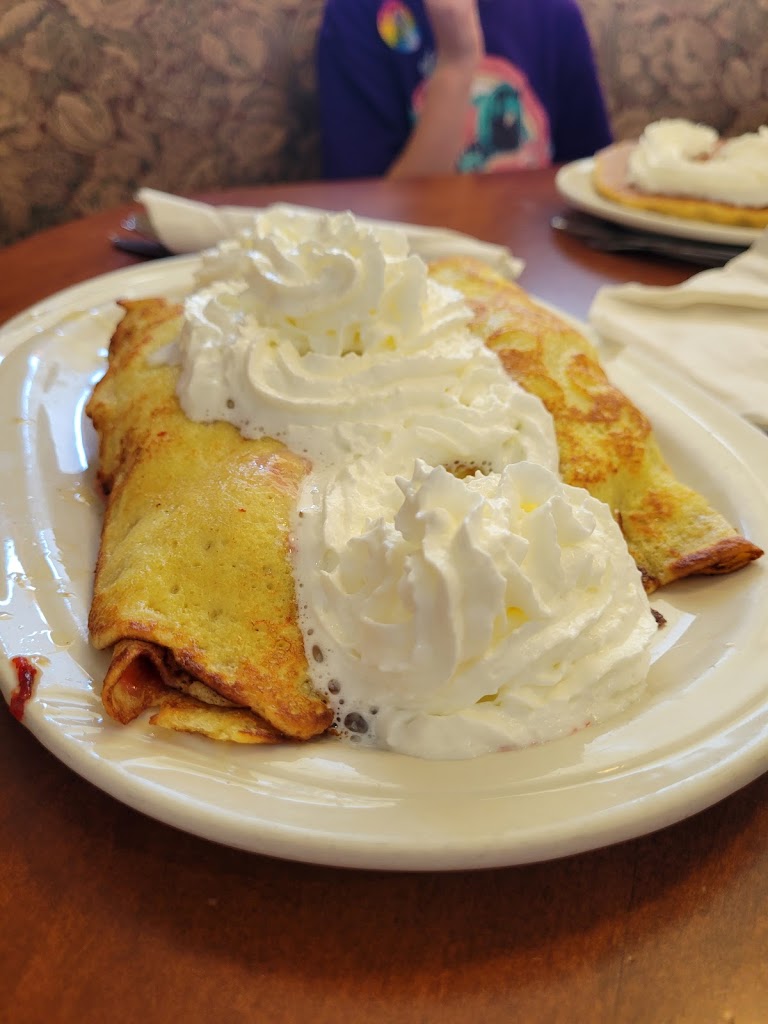 The breakfast portions were pretty generous and tasty. Only critique was the crepe was thick..other than that, everything was delicious . Loved the old-school decor.
