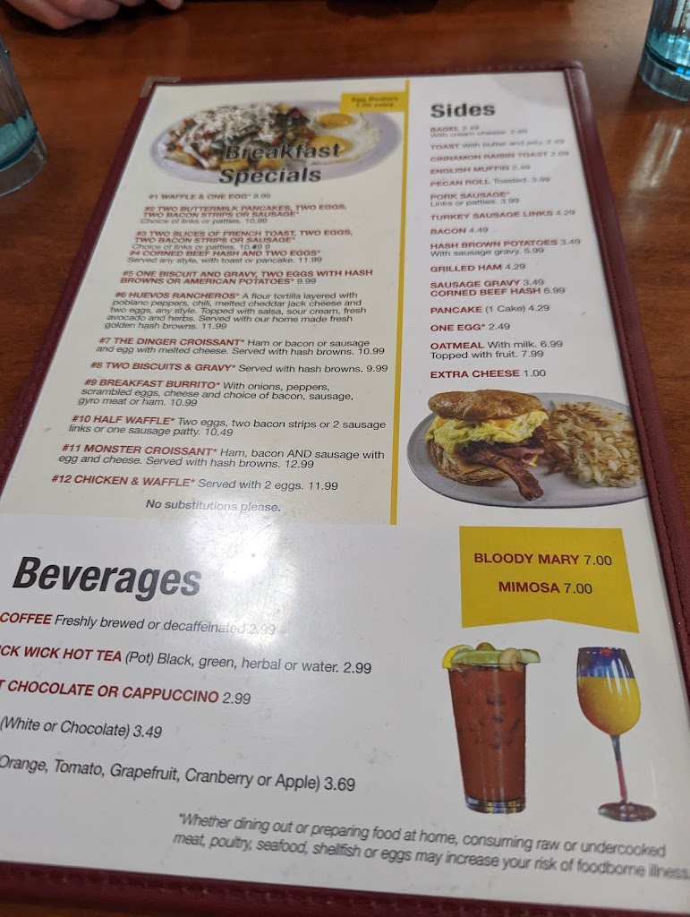 Good prices, big portions, great food. Been meaning to check out their lunch menu, but this is a favorite spot for breakfast!